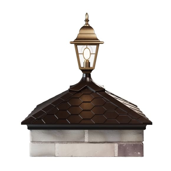 Имитация черепицы и полный окрас в массе дополнят ваш забор и сделают его шикарным! Колпак под фонарь состоит из двух изделий, которые легко и продуманно соединяются.
